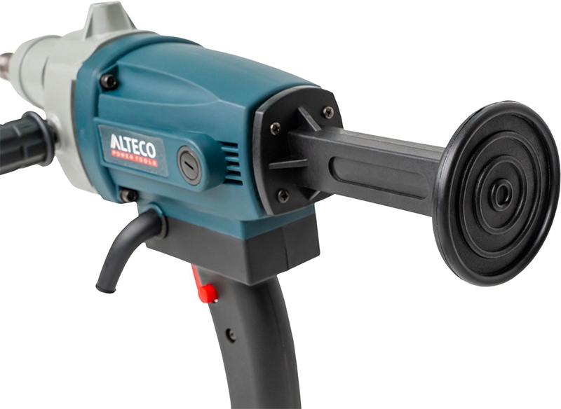 Дрель алмазного бурения Alteco DD 1409 (Альтеко ДД 1409) с защитой от перегрузки позволяет проделывать отверстия в бетонной или кирпичной поверхности, что очень удобно при проведении различных монтажных работ: прокладке труб, электропроводки и т.д.