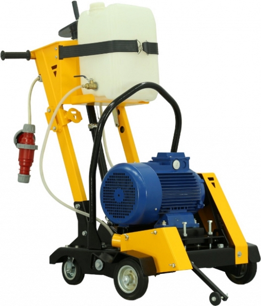 - Вращающиеся вокруг вертикальной оси задние колеса позволяют своевременно и без лишних усилий направлять в нужную сторону и вести криволинейный рез бетона, железобетона, асфальта, повторяя изгиб трещины