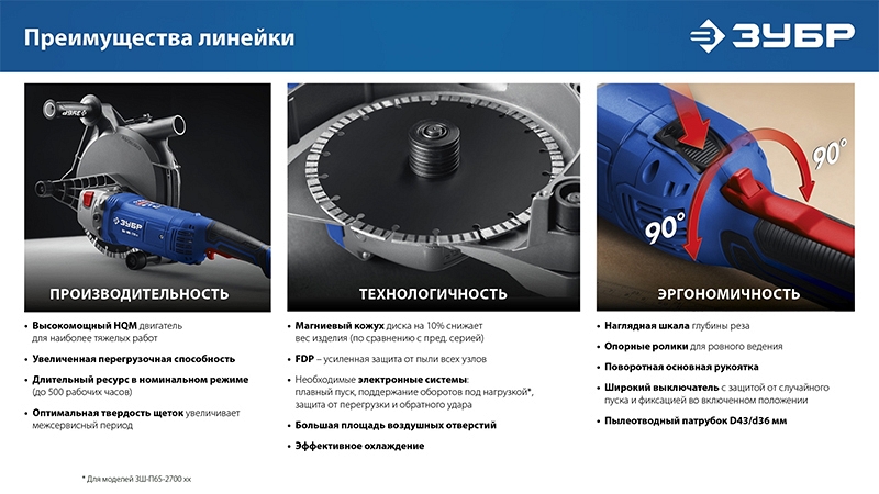 Преимущества штробореза Зубр Профессионал ЗШ-П65-2700 ПСТК: