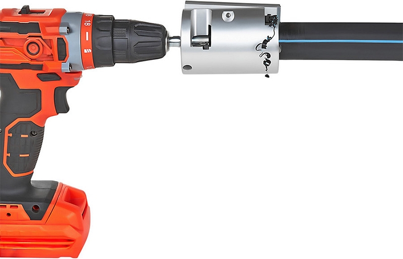 Устройство для снятия оксидного слоя с полиэтиленовых труб Gas Fusion УСО-180 (Газ Фьюжин USO-180) – скребок под дрель или шуруповерт для эффективной зачистки полиэтиленовых (пэ, пнд) труб Ø 180 мм перед муфтовой раструбной и электромуфтовой сваркой в стесненных условиях ограниченного пространства.